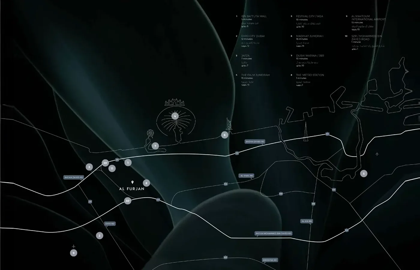 Azizi Central is located in Al Furjan, Dubai, providing convenient access to Sheikh Zayed Road, Ibn Battuta Mall, schools, hospitals, and retail hubs.