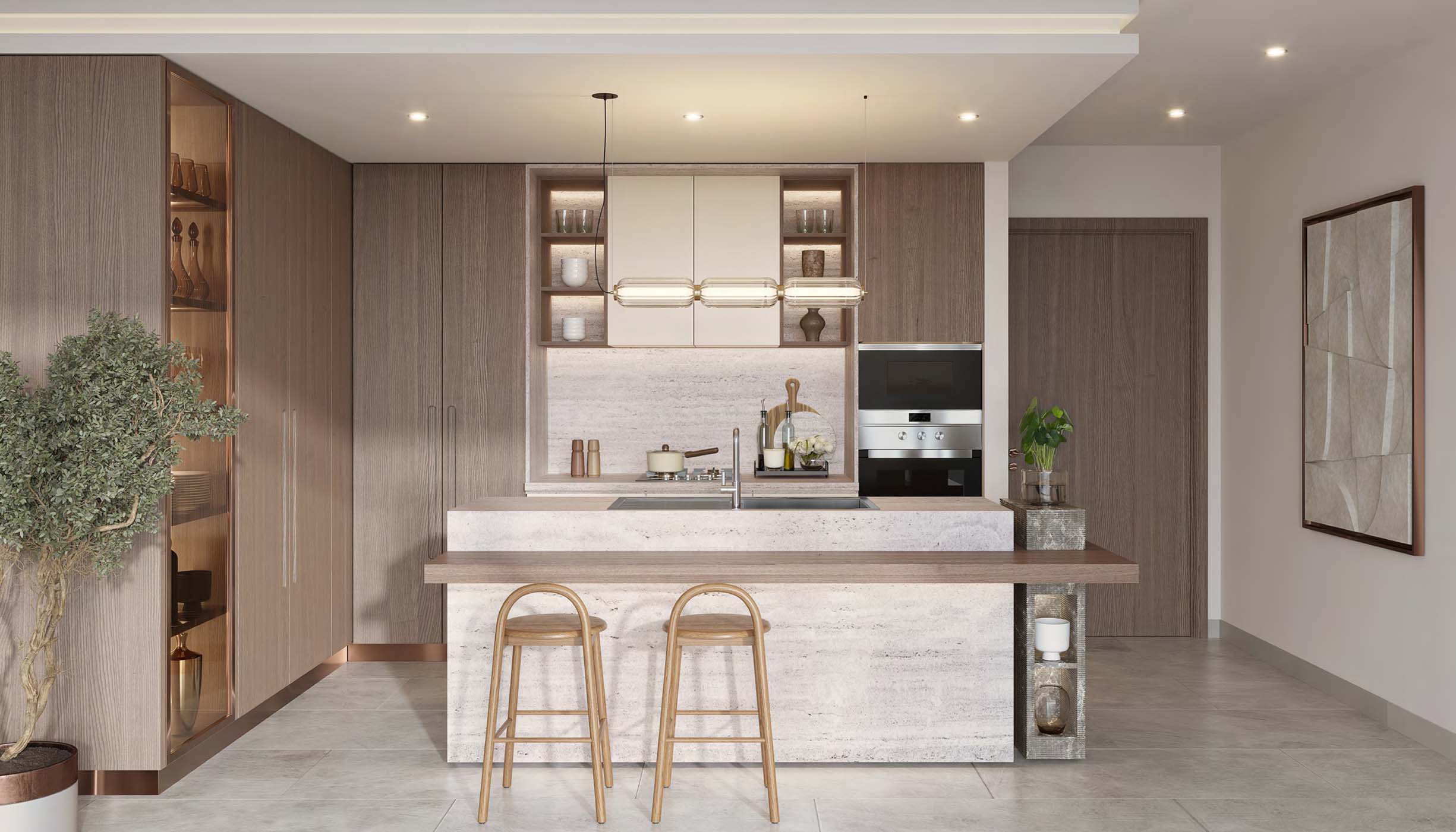 Each apartment is designed with spacious layouts, open living spaces, and minimalist premium finishes that maximize both style and practicality. Large windows allow ample natural light, creating airy, serene indoor environments. The architecture and interior planning reflect Ellington’s luxury-driven design philosophy, making homes that are both visually appealing and functionally superior.